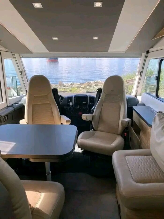 Construit sur le fiable châssis Fiat Ducato 2,3 L Diesel 150 ch, avec boîte automatique, il offre une conduite souple, sécurisée et agréable. Avec ses dimensions généreuses (7,52 m de long et 2,38 m de large) et sa charge utile impressionnante de 1 332 kg, ce camping-car allie espace intérieur et grande capacité d’emport.