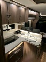 Ce modèle de 2019, affichant seulement 43 000 km, allie luxe, confort et autonomie grâce à son chauffage central ALDE, sa batterie au lithium, son panneau solaire et son aménagement ergonomique sans lit pavillon, offrant une impression d’espace remarquable.