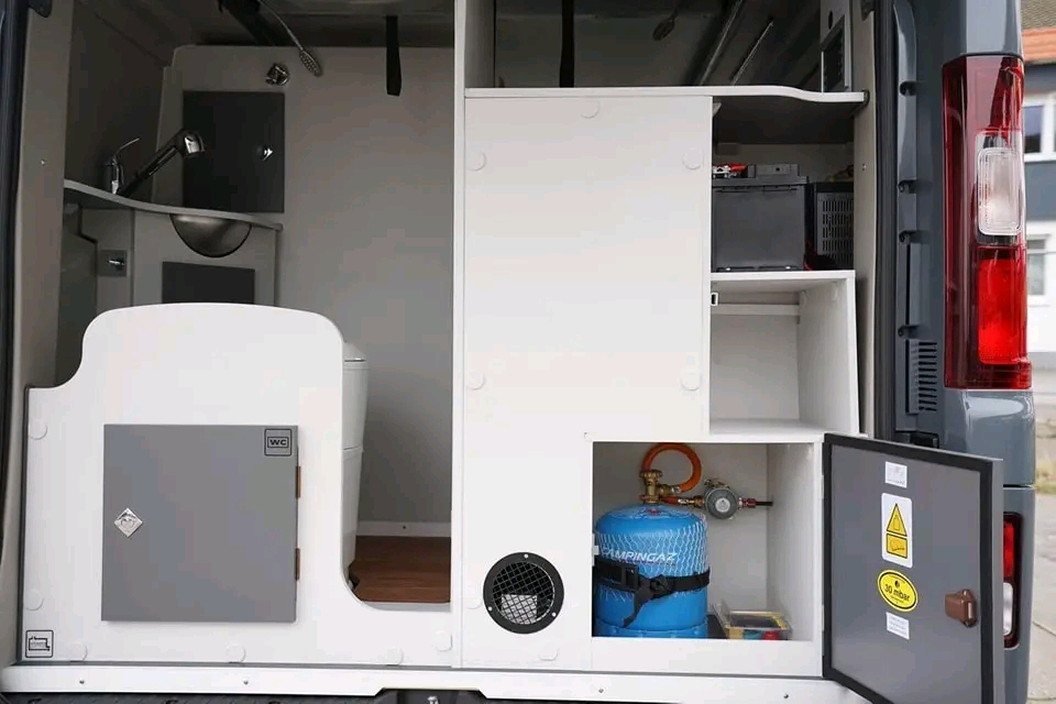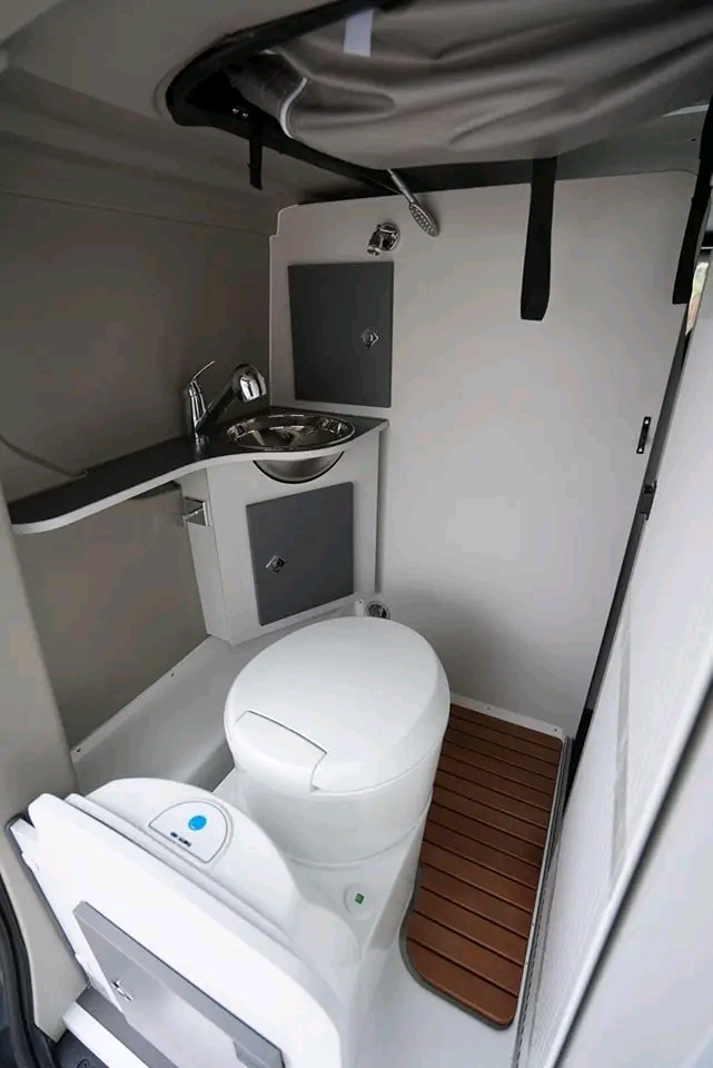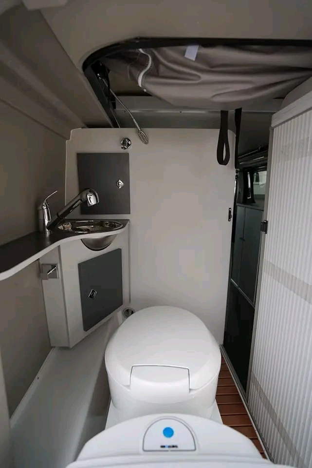 Module toilette/douche (selon version) OU rangement optimisé + douchette extérieure